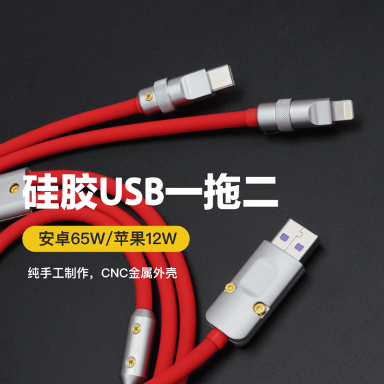 新品GC二合一5A超快充数据线闪充苹果安卓手机华为一拖二充电硅胶