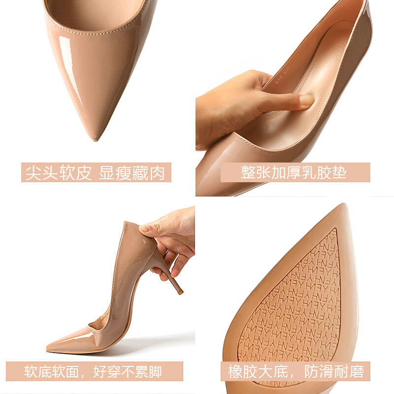 新款网红气质白色高级设计感漆皮单鞋女秋冬